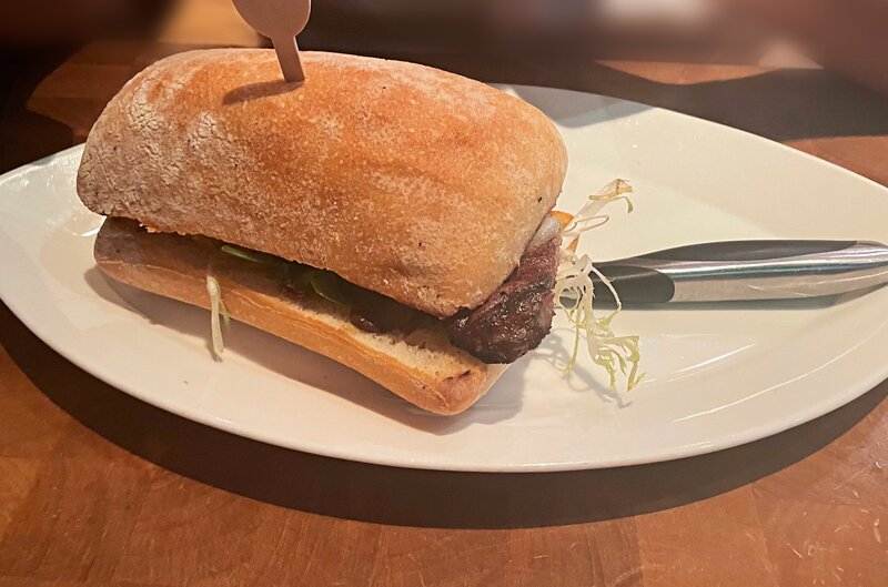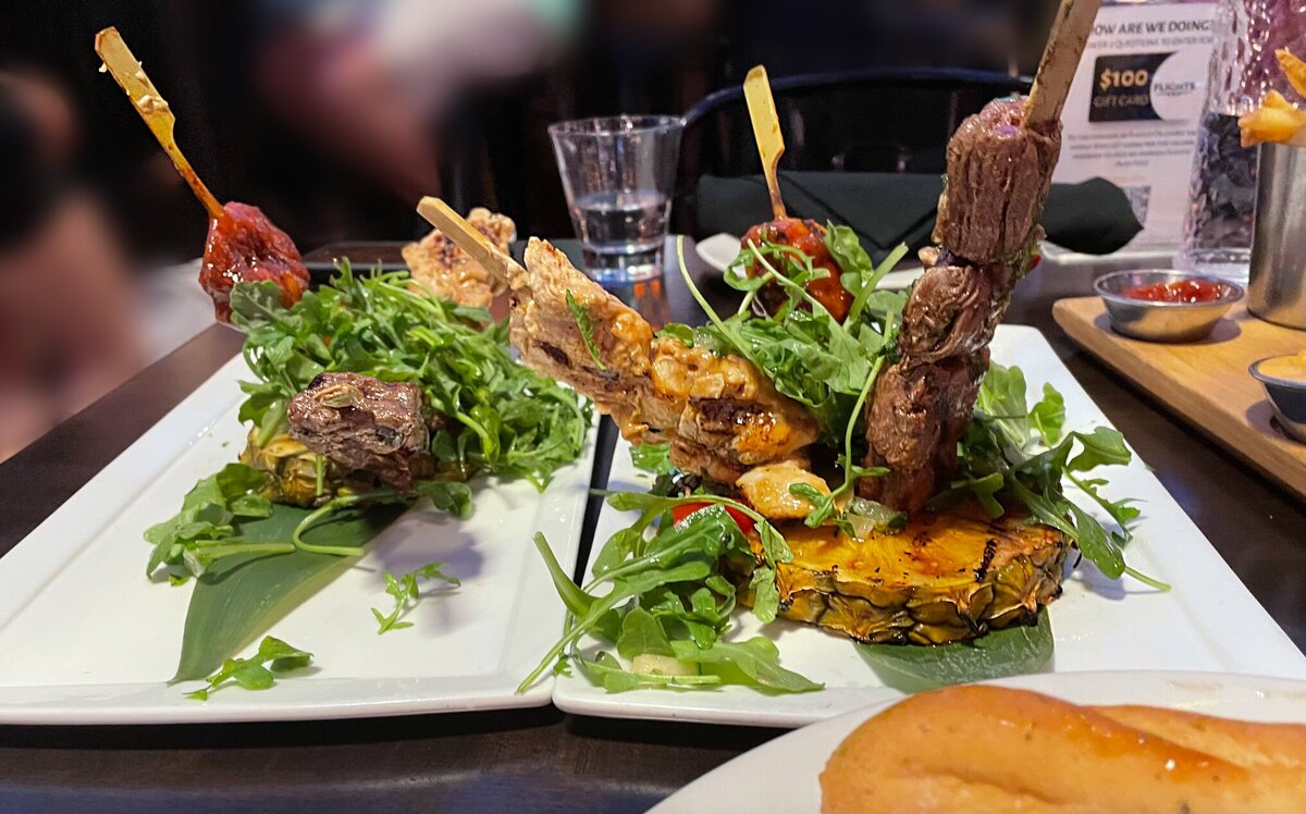 (First photo) Honestly, I have been excited to try Flights because I've been waiting to try the one back home, and the food looks amazing- HOWEVER, I have to note that when we went in 2021 it was very busy. So busy that we couldn't get our waitresse's attention most of the time, and she said the kitchen was too busy for me to get breaded chicken on my Alfredo (even though they had it separately on the menu). If you can try this place when they aren't too busy, it's cool because they have many food and drink options that come as flights so that you can have all your options instead of having to choose a one flavor dish!